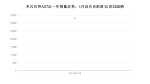2021年1月,东风风神AX7销量为3320辆,同比下降14.76%,