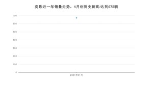 2021年1月,奕歌销量为672辆,同比下降61.47%,