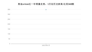 2021年1月,奥迪e-tron销量为348辆,同比增长45%,