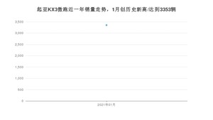 2021年1月,起亚KX3傲跑销量为3353辆,同比下降4.77%,