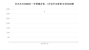 2021年1月,东风风光S560销量为3234辆,同比下降52.41%,