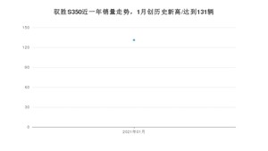 2021年1月,江铃品牌总体销量达到131辆,其中驭胜S350销量达到131辆,占品牌总销量的100%。