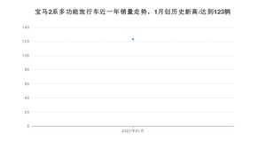 2021年1月,宝马2系多功能旅行车销量为123辆,同比下降49.59%,