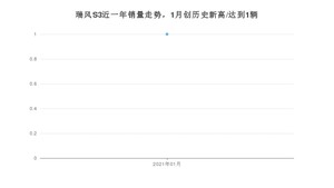 2021年1月,瑞风S3销量为1辆,同比下降99.31%,