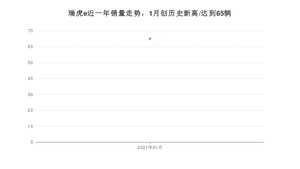 2021年1月,瑞虎e销量为65辆,同比下降58.86%,
