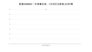 2021年1月,东风富康品牌总体销量达到7辆,其中富康ES500销量达到7辆,占品牌总销量的100%。
