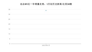 2021年1月,远志M1销量为34辆,