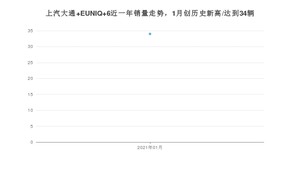2021年1月,上汽大通 EUNIQ 6销量为34辆,