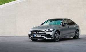 全新一代C级身上仍然能看到现款C级的设计特征,流畅舒展的车身线条搭配较短的前悬和较长的后悬让新车造型仍旧十分富有动感,即便在售的立标豪华版本也是如此。但从整体气势来比较,全新一代C级显然更加年轻运动,整体的层次感也好于现款C级。