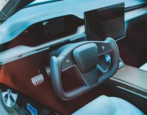 日前,众车网从相关渠道获取了一张新款特斯拉Model S内饰的实车照片,图中的矩形方向盘非常显眼,这与之前官图上保持一致。此前也有配备传统样式方向盘的新款特斯拉Model S内饰谍照,而矩形方向盘也一度被认为是选装配置,目前看来还无法定论。