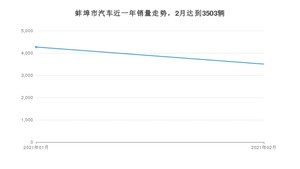 2021年2月,蚌埠市汽车总销量为3503辆,同比增长1%,环比下降17.92%。1-2月份,蚌埠市总销量为7771辆,同比增长88.71%。在最近1年中,蚌埠市销量在2021年01月达到最高,销量为4268辆。