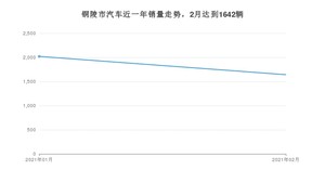 2021年2月,铜陵市汽车总销量为1642辆,同比增长656.68%,环比下降18.71%。1-2月份,铜陵市总销量为3662辆,同比增长86.17%。在最近1年中,铜陵市销量在2021年01月达到最高,销量为2020辆。