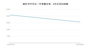 2021年2月,德阳市汽车总销量为3109辆,同比增长380.53%,环比下降24.92%。1-2月份,德阳市总销量为7250辆,同比增长41.88%。在最近1年中,德阳市销量在2021年01月达到最高,销量为4141辆。