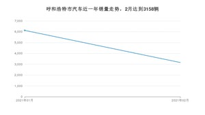2021年2月,呼和浩特市汽车总销量为3158辆,同比增长1%,环比下降48.44%。1-2月份,呼和浩特市总销量为9283辆,同比增长101.06%。在最近1年中,呼和浩特市销量在2021年01月达到最高,销量为6125辆。