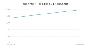 2021年2月,邢台市汽车总销量为4922辆,同比增长1%,环比增长32.49%。1-2月份,邢台市总销量为8637辆,同比下降3.56%。在最近1年中,邢台市销量在2021年02月达到最高,销量为4922辆。