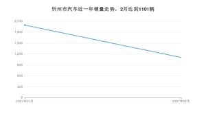 2021年2月,忻州市汽车总销量为1101辆,同比增长364.56%,环比下降44.67%。1-2月份,忻州市总销量为3091辆,同比增长84.54%。在最近1年中,忻州市销量在2021年01月达到最高,销量为1990辆。