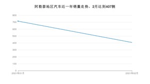 在2021年2月的全国地区销量排名中,阿勒泰地区以407辆的销量位列第299名,上海市以38652辆的销量位列第1名,成都市以35916辆的销量位列第2名。