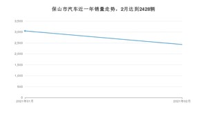 2021年2月,保山市汽车总销量为2428辆,同比增长301.99%,环比下降20.39%。1-2月份,保山市总销量为5478辆,同比增长64.95%。在最近1年中,保山市销量在2021年01月达到最高,销量为3050辆。