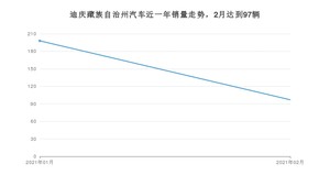 2021年2月,迪庆藏族自治州汽车总销量为97辆,同比增长870%,环比下降51.01%。1-2月份,迪庆藏族自治州总销量为295辆,同比增长20.9%。在最近1年中,迪庆藏族自治州销量在2021年01月达到最高,销量为198辆。