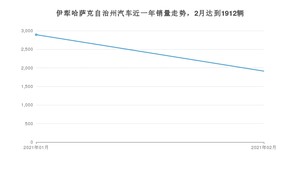 2021年2月,伊犁哈萨克自治州汽车总销量为1912辆,同比增长14%,环比下降33.91%。1-2月份,伊犁哈萨克自治州总销量为4805辆,同比增长102.15%。在最近1年中,伊犁哈萨克自治州销量在2021年01月达到最高,销量为2893辆。