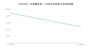 在国内市场上,马自达在2021年2月的销量为11938辆,同比增长443.38%,环比下降45.82%。1-2月份,马自达累计销量为33973辆,较去年同期增长42.28%。