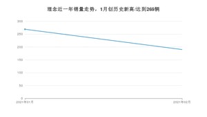 在国内市场上,理念在2021年2月的销量为190辆,同比增长1%,环比下降29.37%。1-2月份,理念累计销量为459辆,较去年同期增长378.13%。