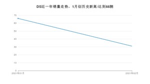 在国内市场上,DS在2021年2月的销量为31辆,同比增长416.67%,环比下降53.03%。1-2月份,DS累计销量为97辆,较去年同期增长11.49%。