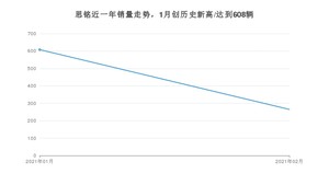 在国内市场上,思铭在2021年2月的销量为265辆,同比增长2%,环比下降56.41%。1-2月份,思铭累计销量为873辆,较去年同期增长1%。