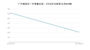 在国内市场上,广汽集团在2021年2月的销量为209辆,同比增长41.22%,环比下降66.02%。1-2月份,广汽集团累计销量为824辆,较去年同期增长38.95%。