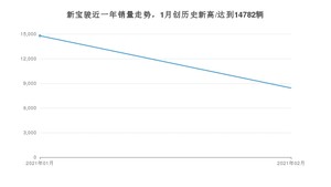 在国内市场上,新宝骏在2021年2月的销量为8424辆,同比增长421.29%,环比下降43.01%。1-2月份,新宝骏累计销量为23206辆,较去年同期增长21.91%。