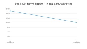 2021年2月,凯迪拉克CT4销量为1220辆,同比增长24%,环比下降37.91%。1-2月份,凯迪拉克CT4销量为3185辆,同比增长63%。在最近1年中,凯迪拉克CT4销量在2021年01月达到最高,销量为1965辆。