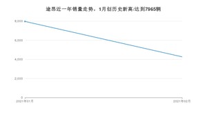 2021年2月,途昂销量为4263辆,同比增长635%,环比下降46.48%。1-2月份,途昂销量为12228辆,同比增长56.71%。在最近1年中,途昂销量在2021年01月达到最高,销量为7965辆。