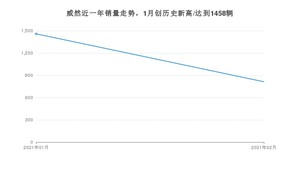 2021年2月,威然销量为813辆,环比下降44.24%。1-2月份,威然销量为2271辆,在最近1年中,威然销量在2021年01月达到最高,销量为1458辆。