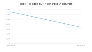 2021年2月,逍客销量为10125辆,同比增长721.83%,环比下降48%。1-2月份,逍客销量为29598辆,同比增长97.69%。在最近1年中,逍客销量在2021年01月达到最高,销量为19473辆。