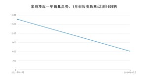 2021年2月,索纳塔销量为610辆,同比增长15%,环比下降63.21%。1-2月份,索纳塔销量为2268辆,同比增长1%。在最近1年中,索纳塔销量在2021年01月达到最高,销量为1658辆。