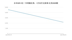 2021年2月,本田UR-V销量为2167辆,同比增长1%,环比下降52.11%。1-2月份,本田UR-V销量为6692辆,同比增长313.85%。在最近1年中,本田UR-V销量在2021年01月达到最高,销量为4525辆。