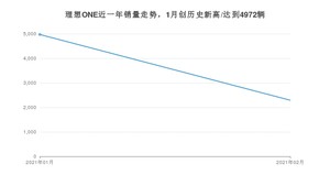 2021年2月,理想ONE销量为2291辆,同比增长646.25%,环比下降53.92%。1-2月份,理想ONE销量为7263辆,同比增长379.72%。在最近1年中,理想ONE销量在2021年01月达到最高,销量为4972辆。