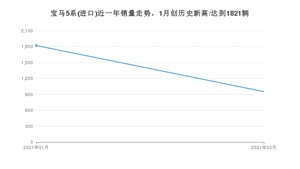 宝马5系(进口)2月份销量数据发布 共952台(2021年)