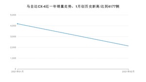 2021年2月,马自达品牌总体销量达到11938辆,其中马自达CX-4销量达到2131辆,占品牌总销量的17.85%。