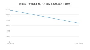 2021年2月,缤越销量为6829辆,同比增长509.19%,环比下降40.93%。1-2月份,缤越销量为18390辆,同比增长50.42%。在最近1年中,缤越销量在2021年01月达到最高,销量为11561辆。