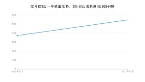 2021年2月,宝马iX3销量为544辆,环比增长46.63%。1-2月份,宝马iX3销量为915辆,在最近1年中,宝马iX3销量在2021年02月达到最高,销量为544辆。