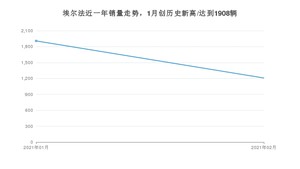 2021年2月,埃尔法销量为1209辆,同比增长590.86%,环比下降36.64%。1-2月份,埃尔法销量为3117辆,同比增长40.09%。在最近1年中,埃尔法销量在2021年01月达到最高,销量为1908辆。