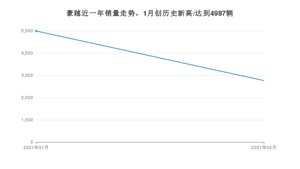 2021年2月,豪越销量为2763辆,环比下降44.6%。1-2月份,豪越销量为7750辆,在最近1年中,豪越销量在2021年01月达到最高,销量为4987辆。