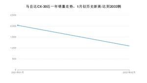 2021年2月,马自达品牌总体销量达到11938辆,其中马自达CX-30销量达到1090辆,占品牌总销量的9.13%。