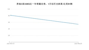 2021年2月,奔驰C级AMG销量为54辆,同比增长74.19%,环比下降33.33%。1-2月份,奔驰C级AMG销量为135辆,同比下降38.36%。在最近1年中,奔驰C级AMG销量在2021年01月达到最高,销量为81辆。