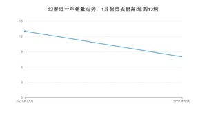 2021年2月,幻影销量为8辆,环比下降38.46%。1-2月份,幻影销量为21辆,同比增长61.54%。在最近1年中,幻影销量在2021年01月达到最高,销量为13辆。