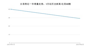 2021年2月,古思特销量为29辆,同比增长866.67%,环比下降27.5%。1-2月份,古思特销量为69辆,同比增长146.43%。在最近1年中,古思特销量在2021年01月达到最高,销量为40辆。