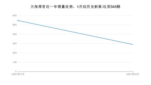 2021年2月,大指挥官销量为289辆,同比增长556.82%,环比下降46.97%。1-2月份,大指挥官销量为834辆,同比增长23.37%。在最近1年中,大指挥官销量在2021年01月达到最高,销量为545辆。