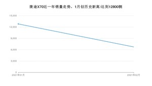 2021年2月,捷途X70销量为6721辆,同比增长1%,环比下降47.49%。1-2月份,捷途X70销量为19521辆,同比增长141.96%。在最近1年中,捷途X70销量在2021年01月达到最高,销量为12800辆。