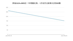 2021年2月,奔驰GLB AMG销量为152辆,环比下降42.21%。1-2月份,奔驰GLB AMG销量为415辆,在最近1年中,奔驰GLB AMG销量在2021年01月达到最高,销量为263辆。